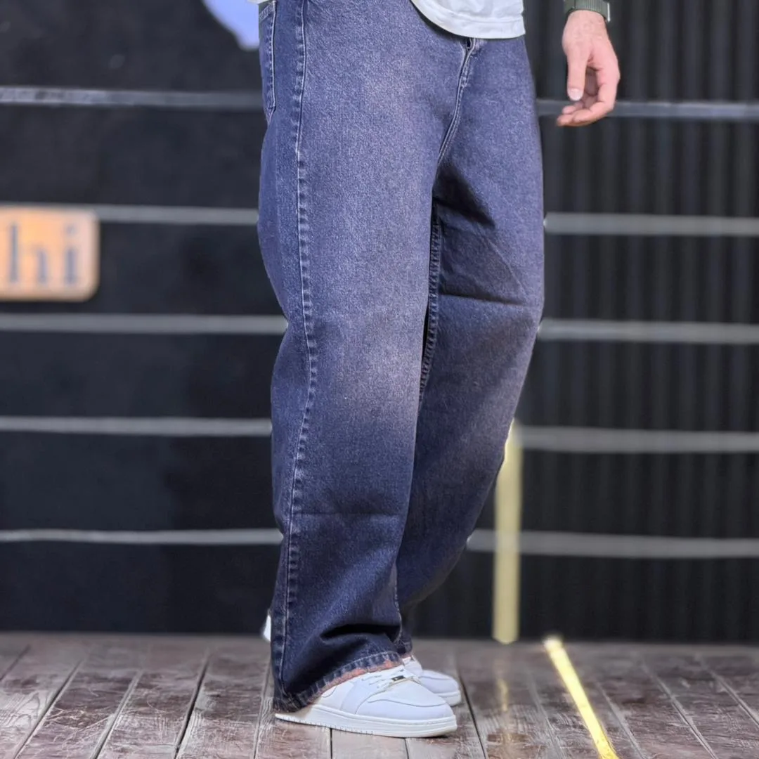 شلوار جین بگ زاپ دار آبی کد 3/84