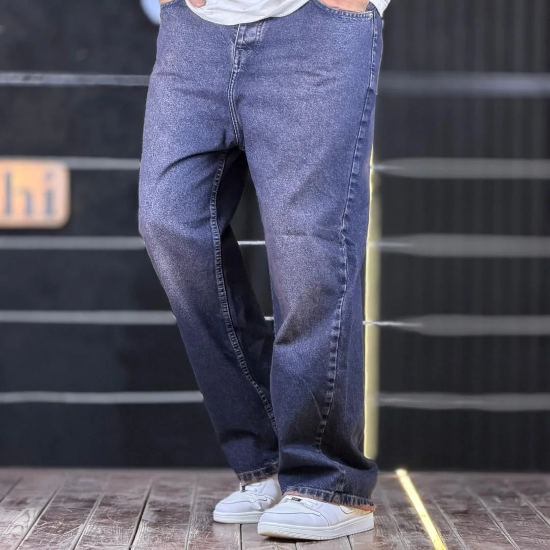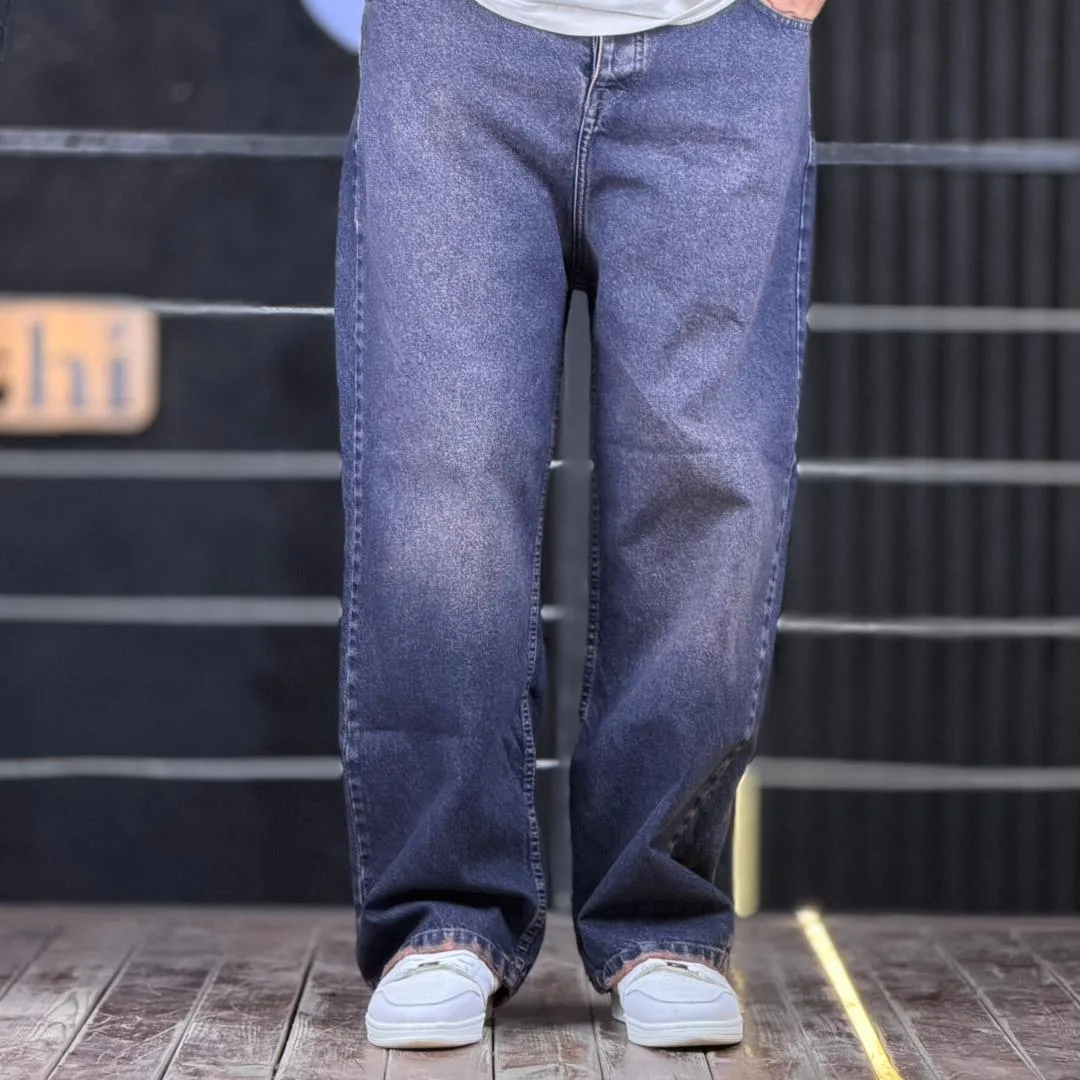 شلوار جین بگ ساده آبی تیره تینت قهوه ای 4/594