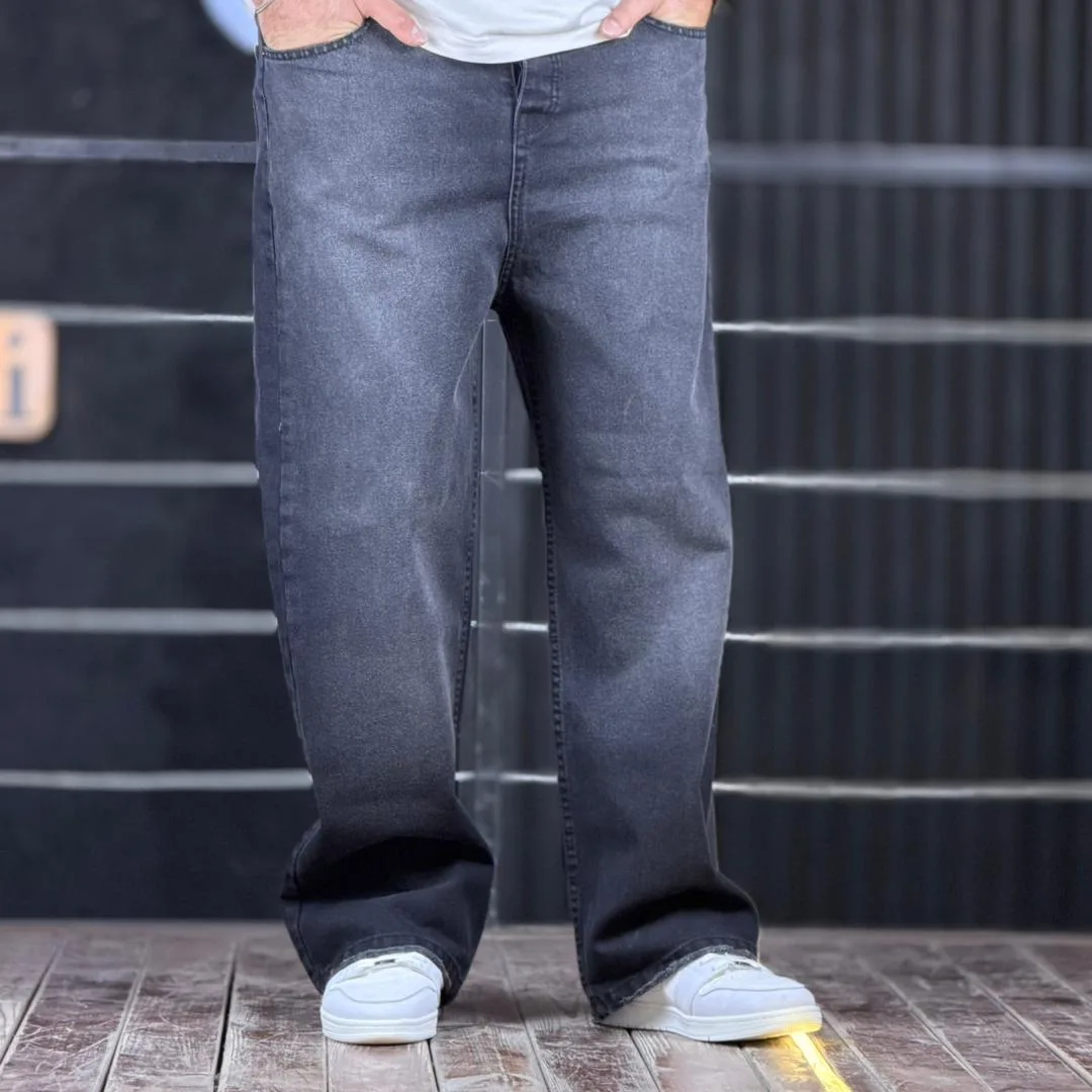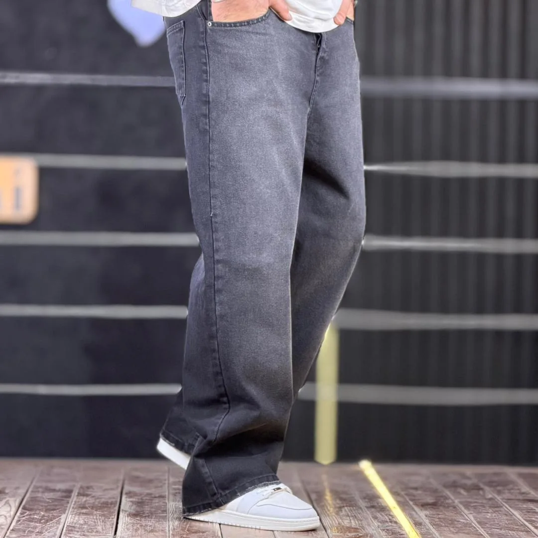 شلوار جین بگ ساده دودی تیره شست سفید 4/562