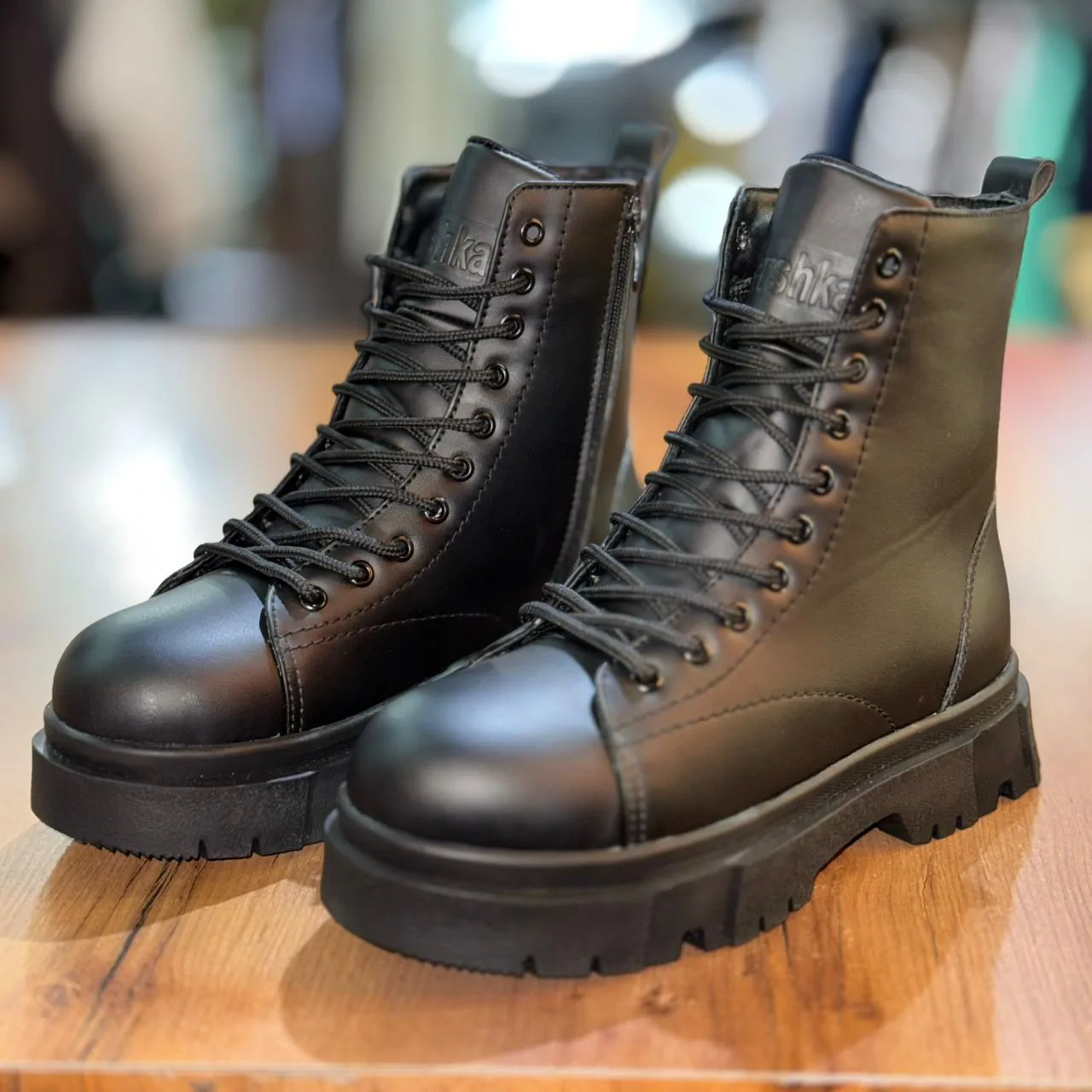 بوت مردانه مشکی بند دار بغل زیپ برشکا
