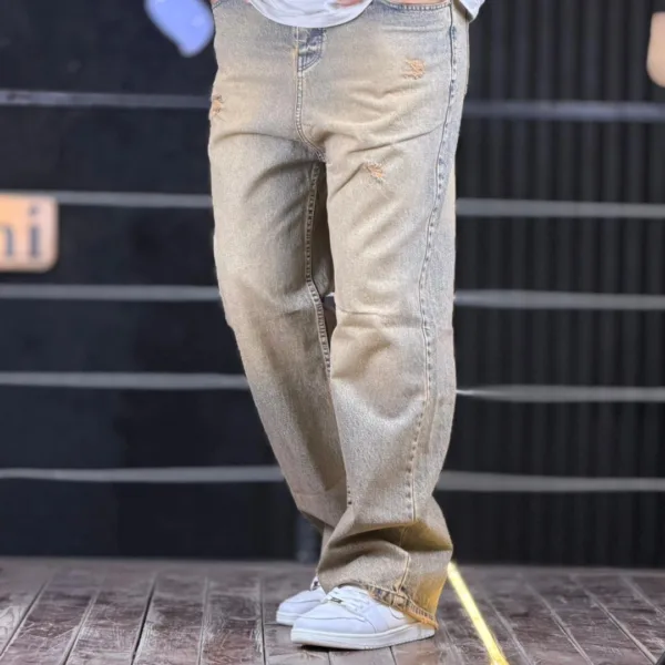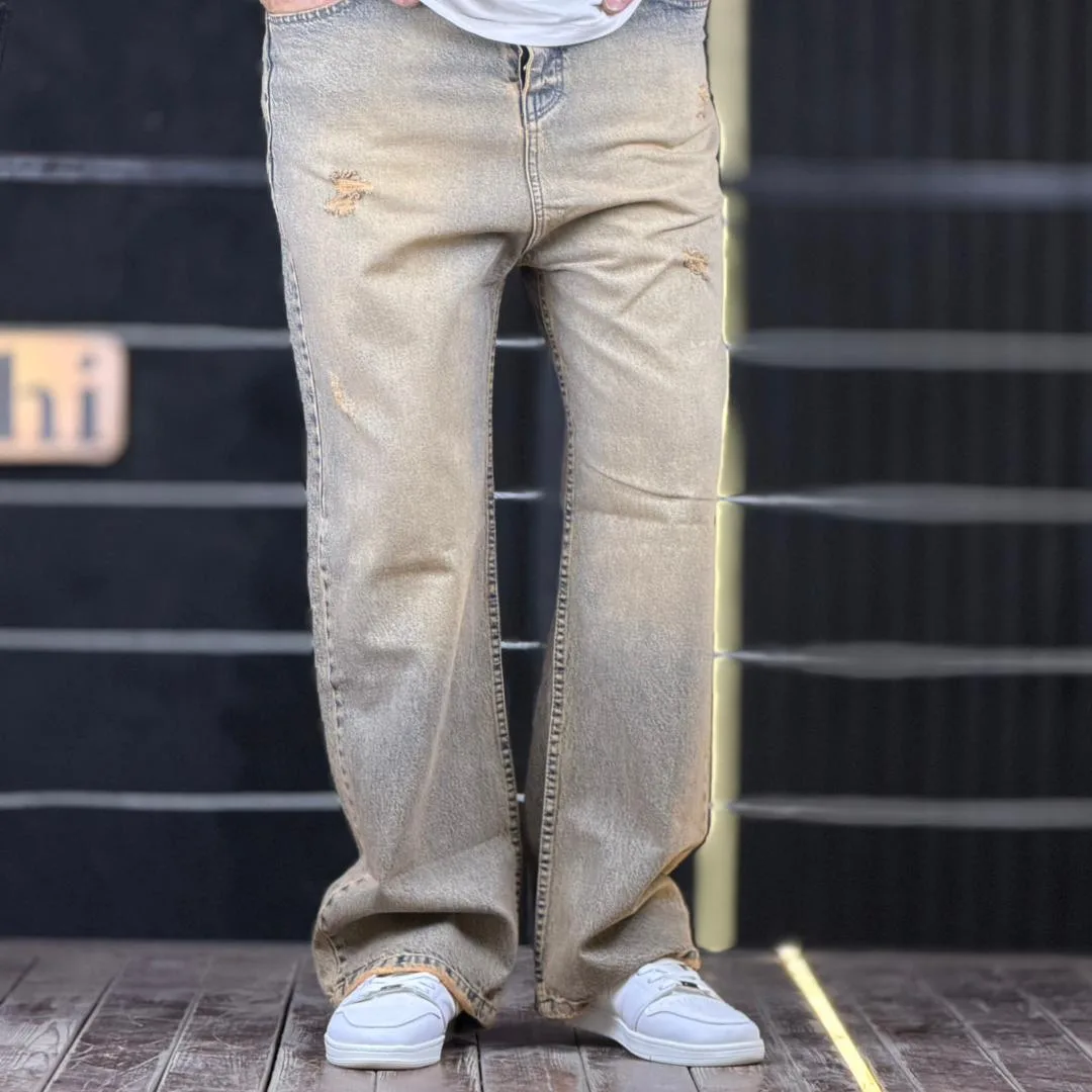 شلوار جین بگ زخمی آبی تینت قهوه ای 4/464
