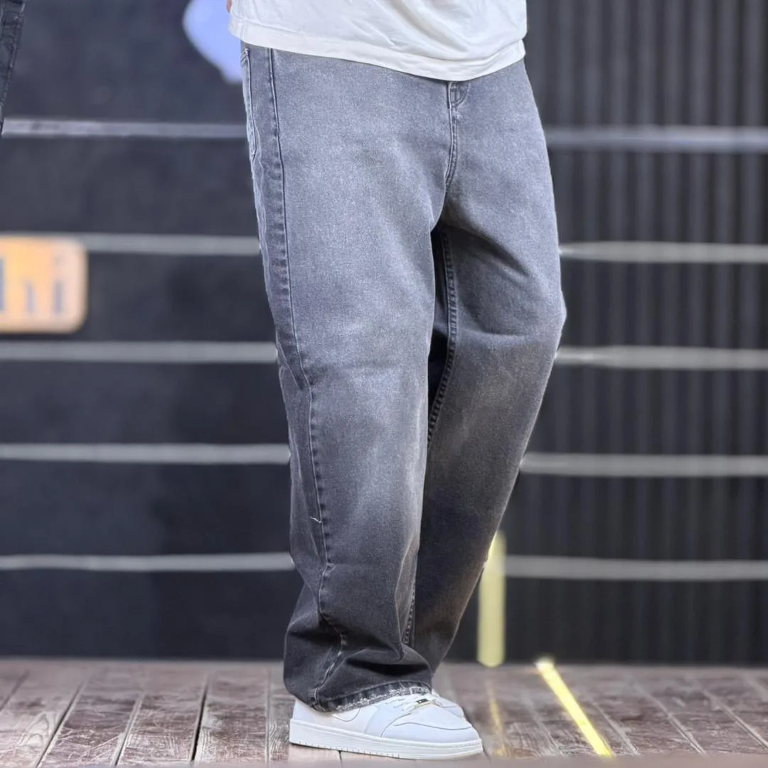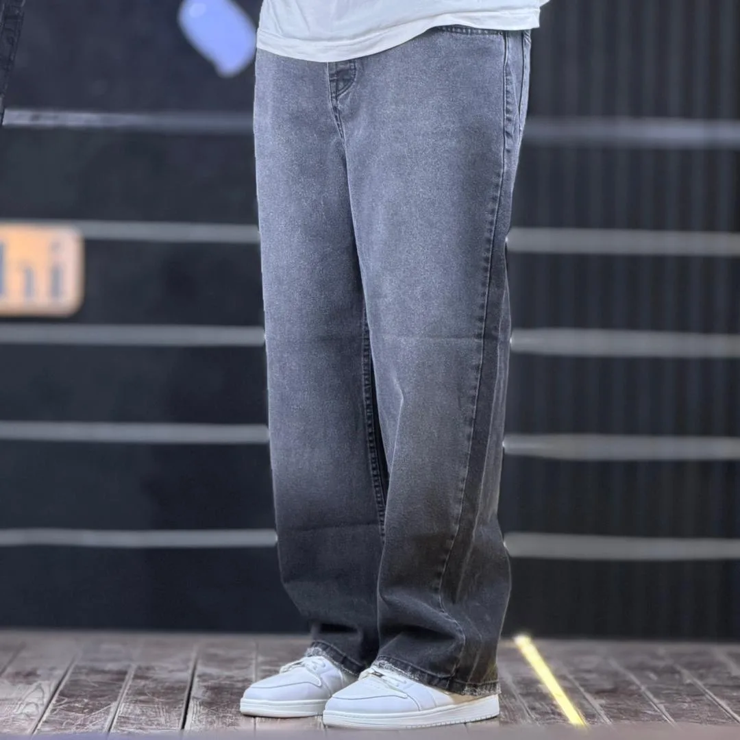 شلوار جین بگ ساده دودی تیره تینت سفید 4/566