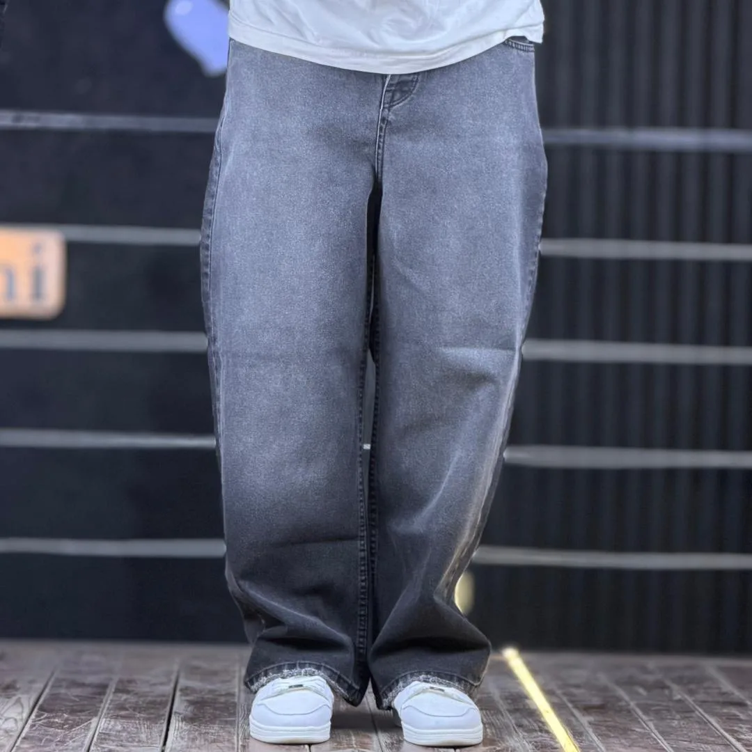 شلوار جین بگ زاپ دار خاکستری کد 6667
