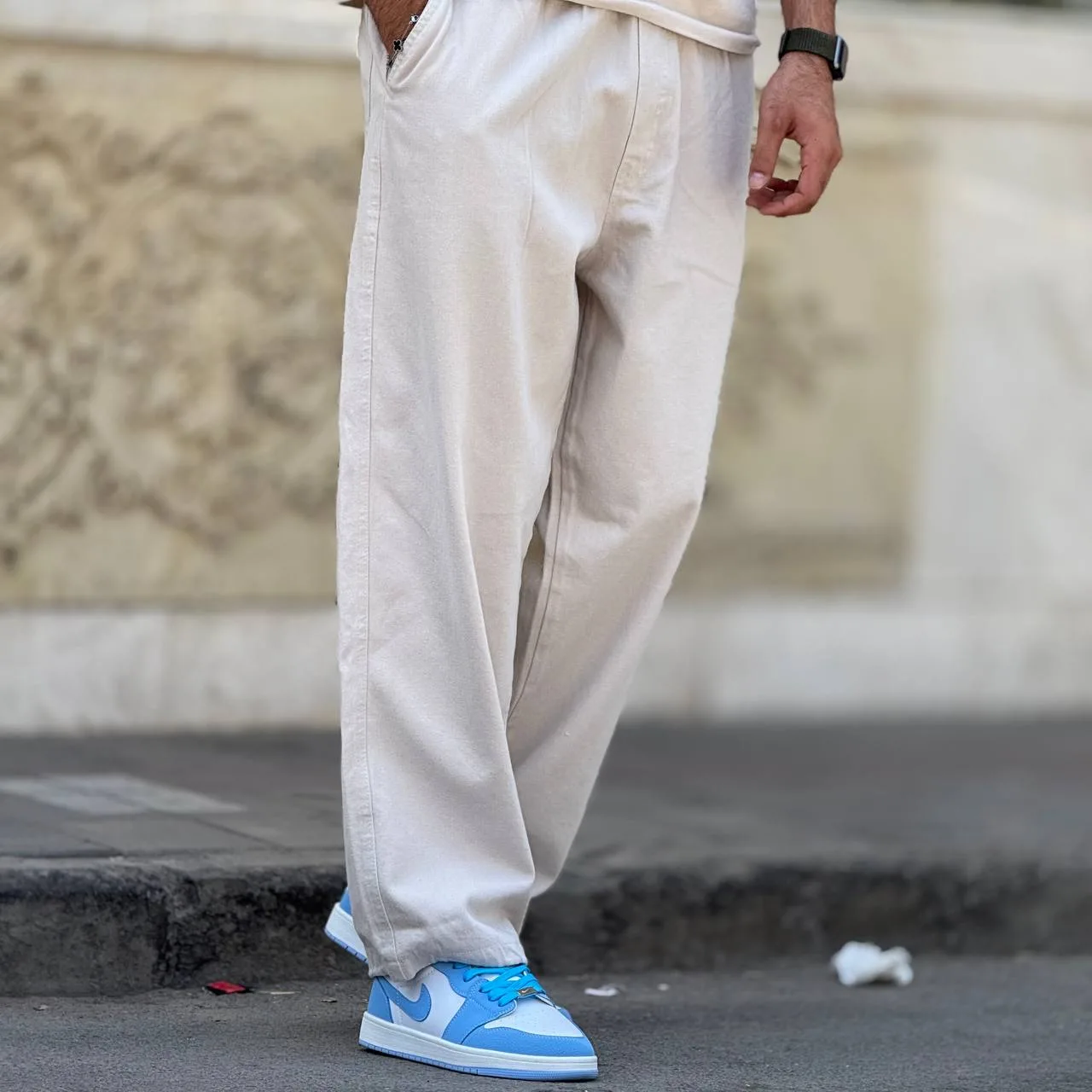 شلوار بگ لینن کنفی