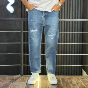 شلوار مام فیت جین مردانه زاپدار آبی یخی کد 3/545