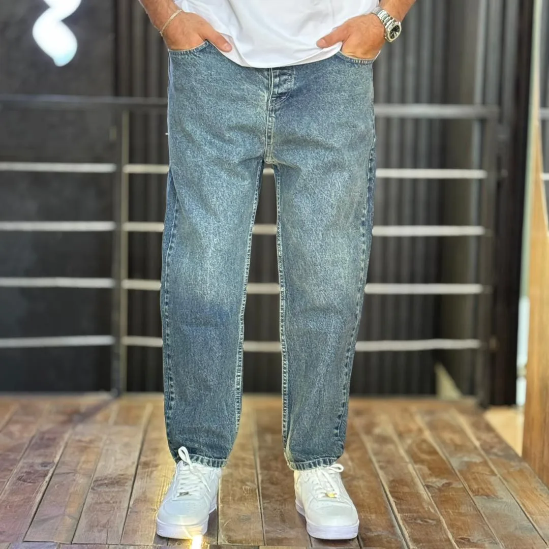 شلوار مام فیت جین مردانه زاپدار آبی کد 3/769