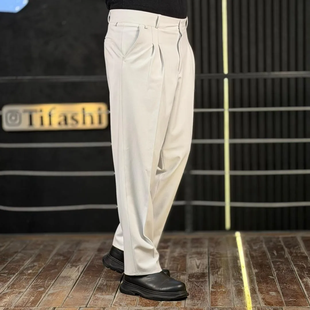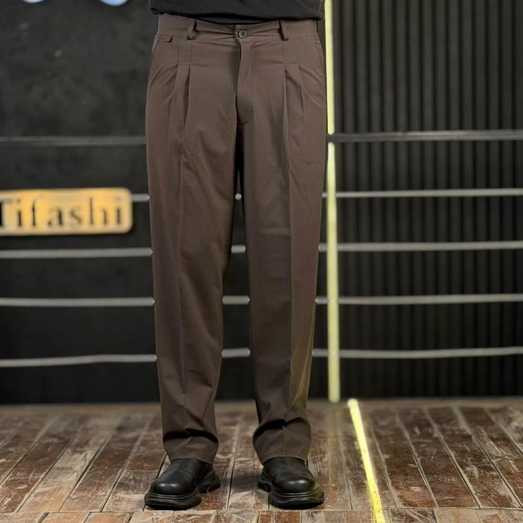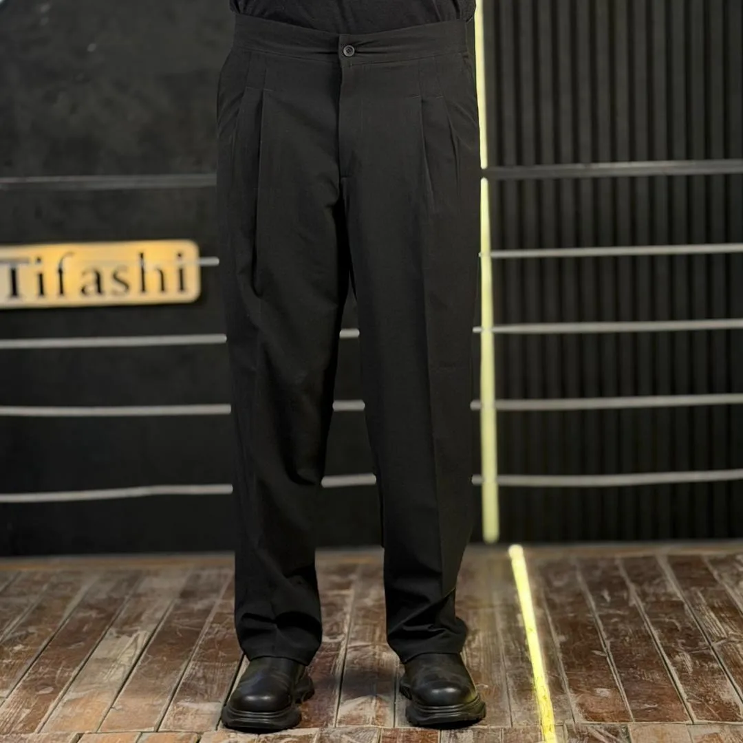 شلوار پارچه ای کلاسیک نیم بگ مردانه بزیاق پیله دار