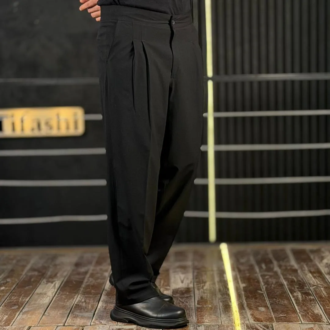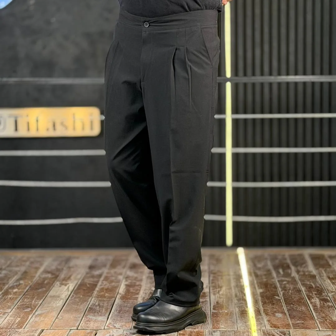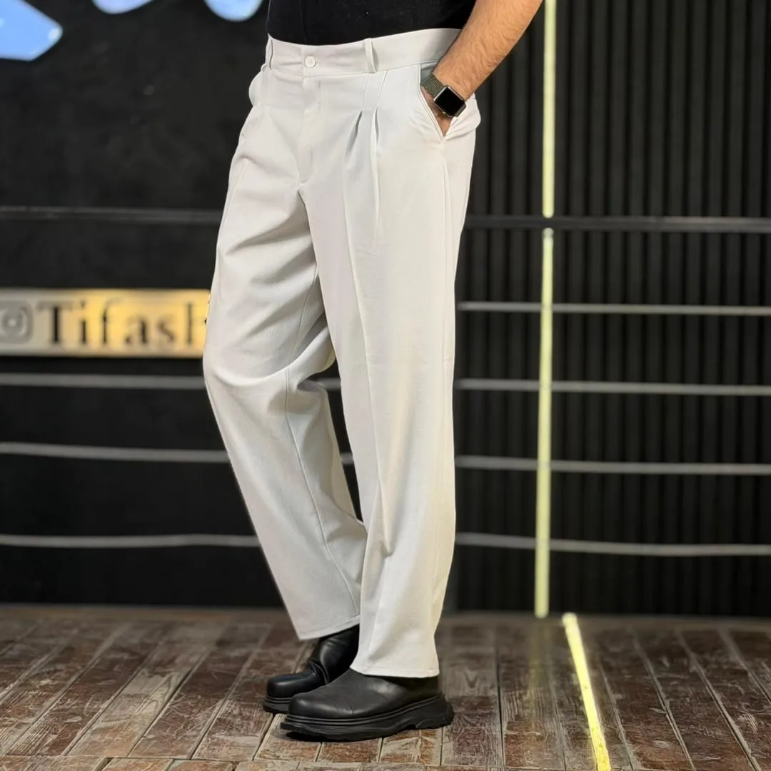 شلوار پارچه ای کلاسیک نیم بگ مردانه بزیاق پیله دار