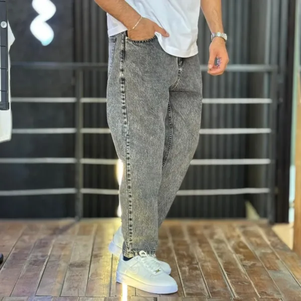 شلوار مام فیت جین مردانه دودی کد 3/1083