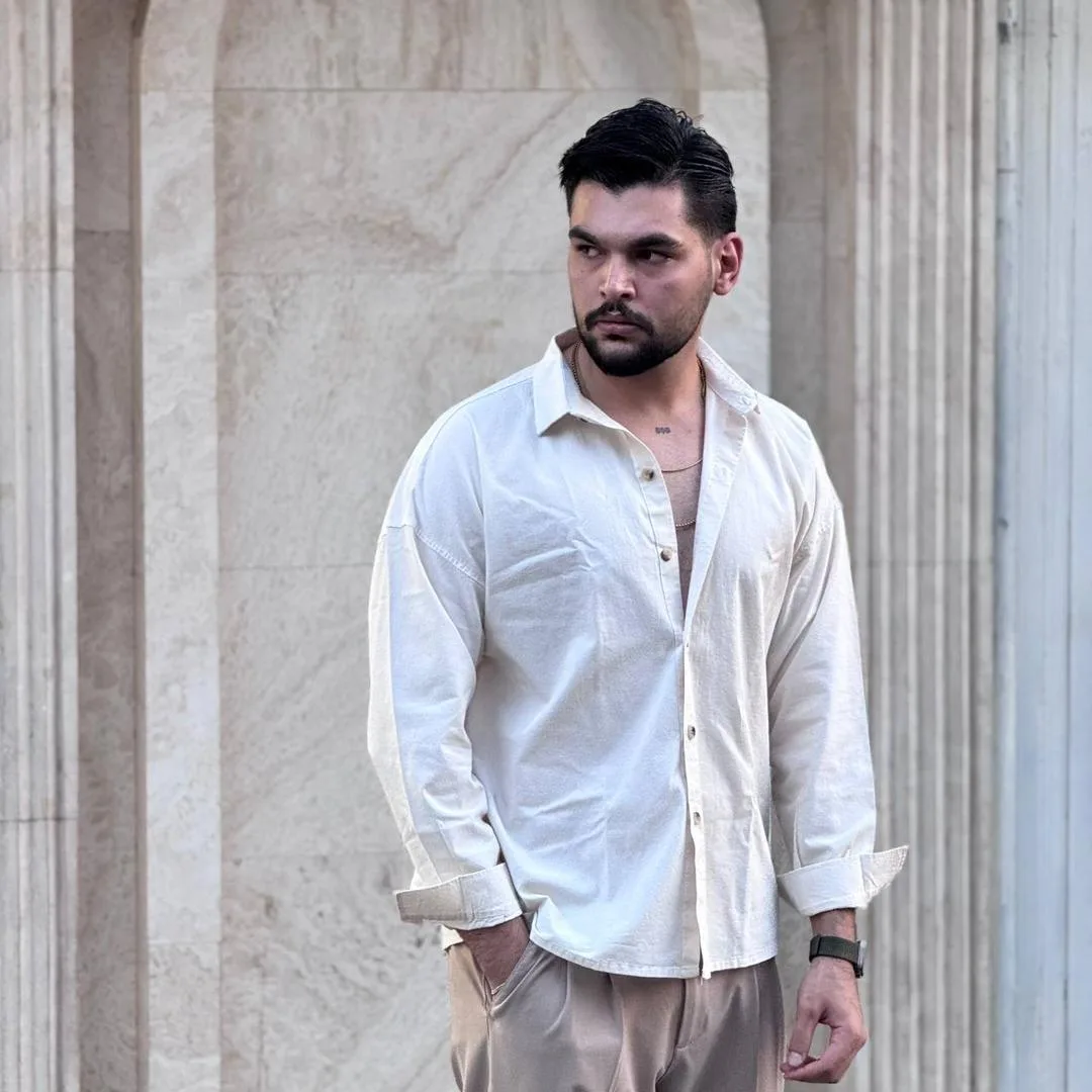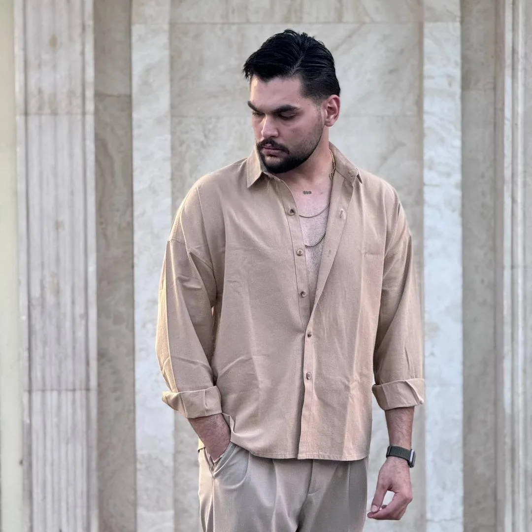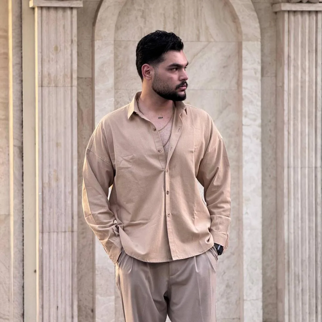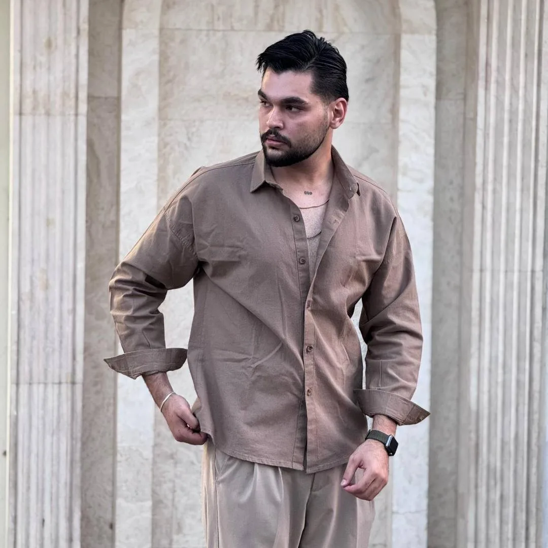 پیراهن مردانه آستین بلند لینن ساده