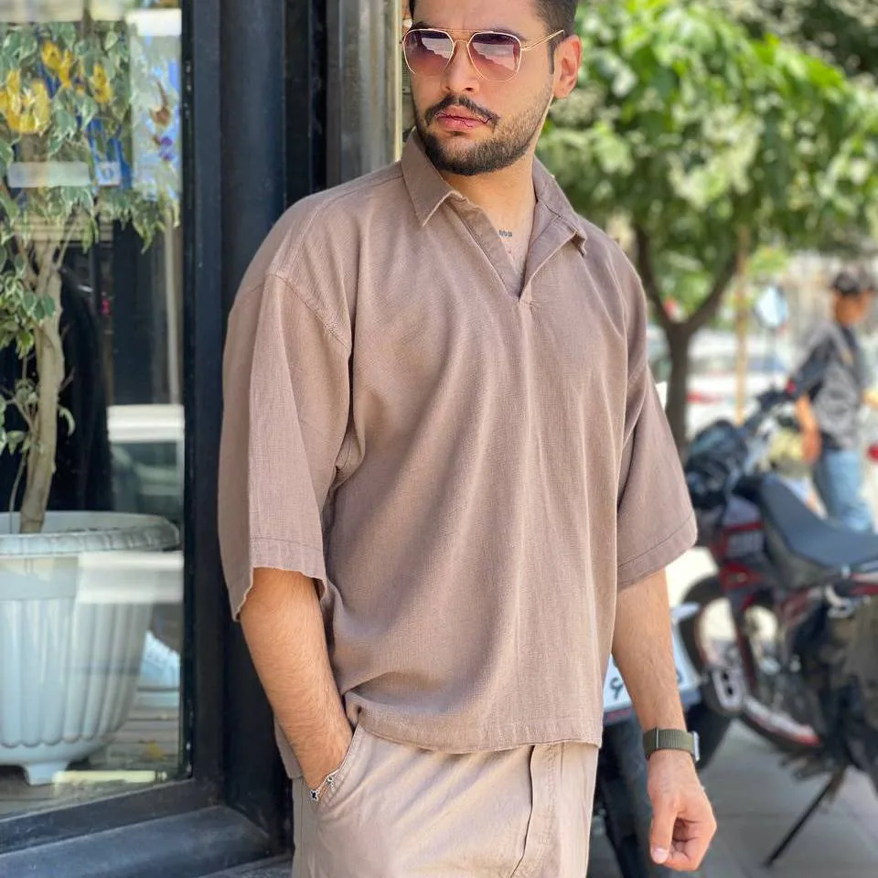 تیشرت یقه دار مردانه آستین کوتاه کنفی